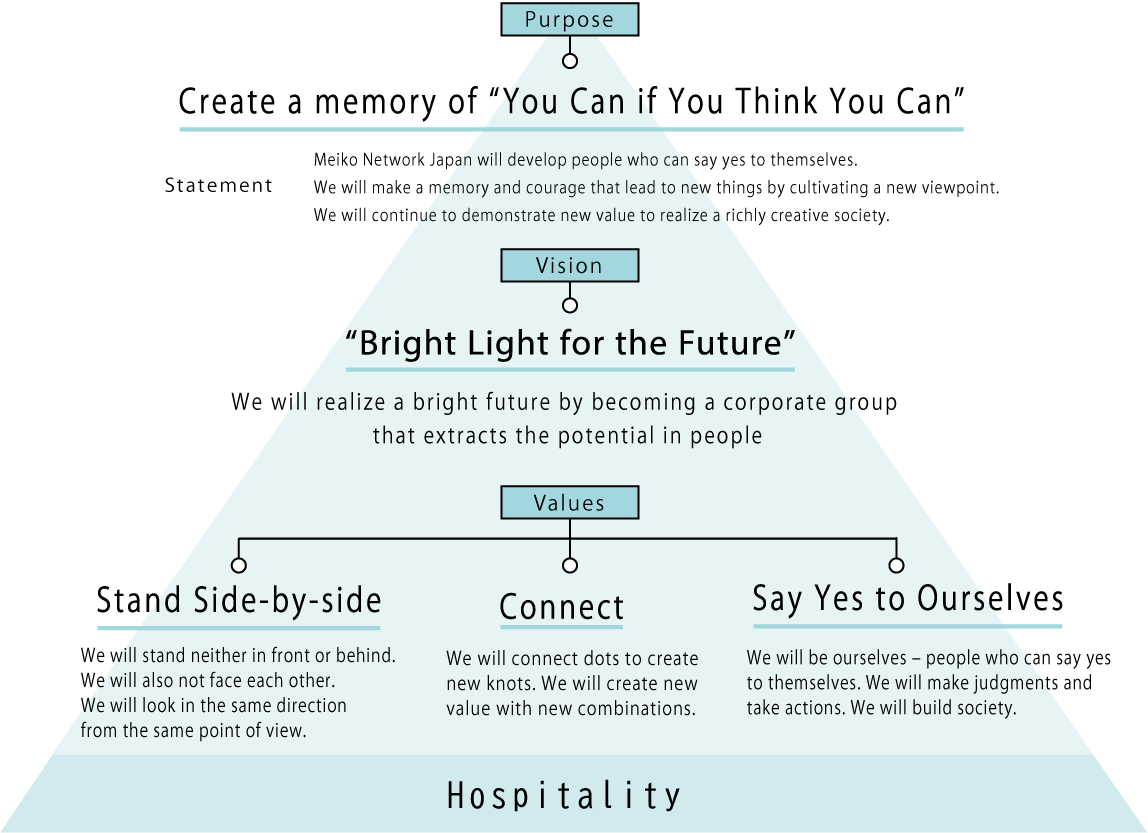 The Company now again declares the destination of its evolution for Meiko Network Japan that is in the process of evolution and the future beyond that.