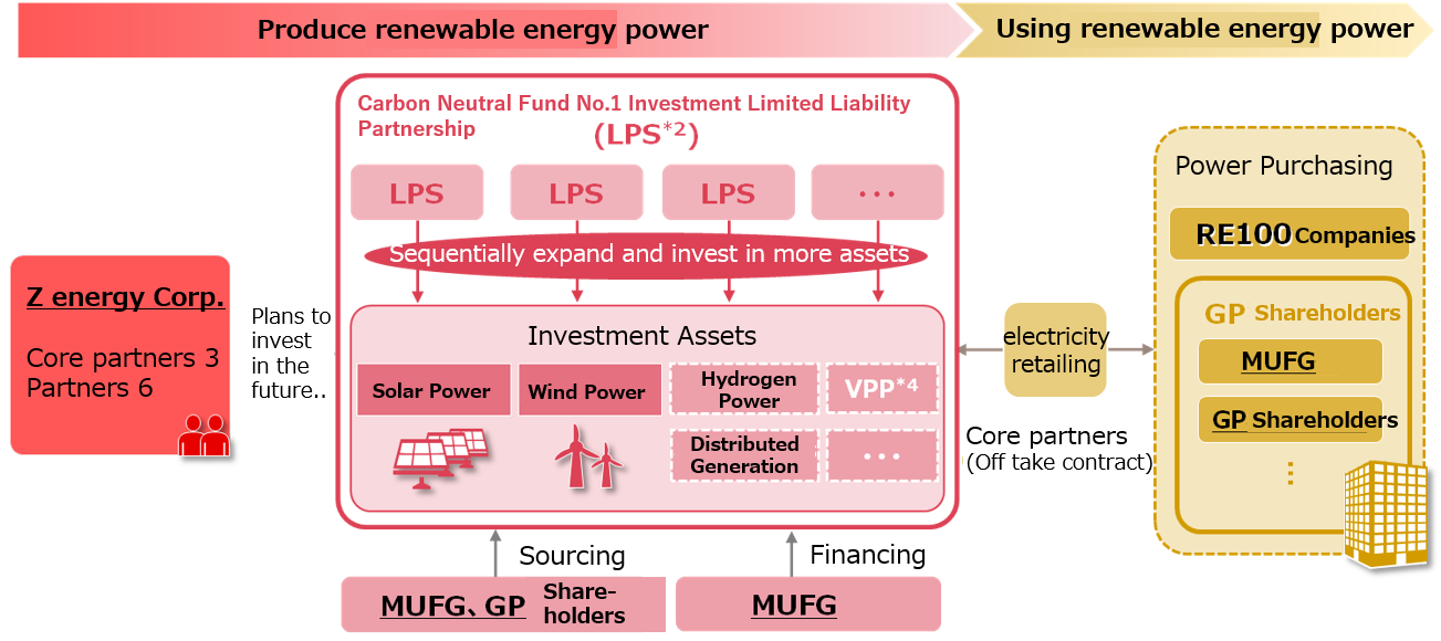 This fund was established by Z Energy Corporation (established in Sep. 2021). The fund not only invests in power generation projects that "produce" renewable energy power, but also provides a one-stop service for "using" renewable energy power. The fund aims to contribute to the diffusion and expansion of renewable energy in Japan.