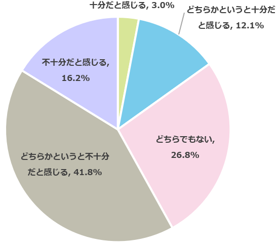 一方で「不十分だと感じる(16.2%)」、「どちらかというと不十分だと感じる(41.8%)」と合わせて58.0%、保護者の約6割が現在の自宅の防災対策では不十分だと感じていることが分かりました。