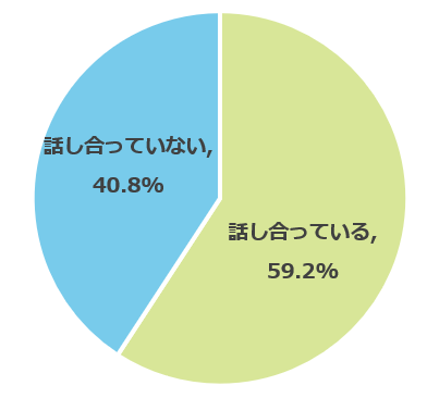 次に、子どもと防災について話し合うことがあるか伺ったところ、「話し合っている(59.2%)」、「話し合っていない(40.8%)」と、約6割の保護者が防災について子どもと話し合っていることが分かりました。