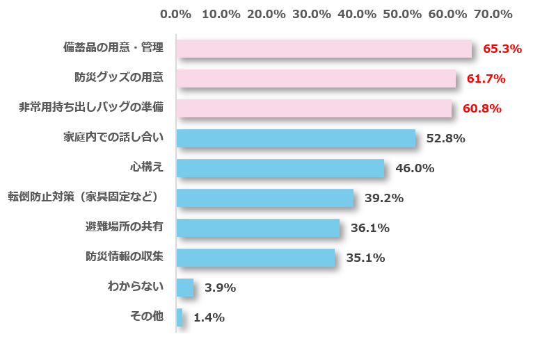 家庭内の防災対策として不十分に感じるもの最多は「備蓄品の用意・管理」
