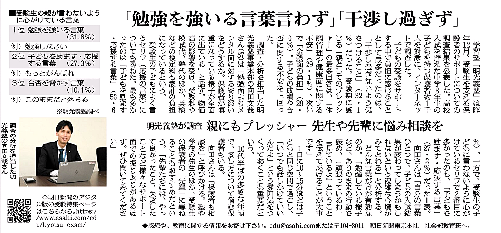 明光義塾が調査 親にもプレシャー先生や先輩に悩み相談