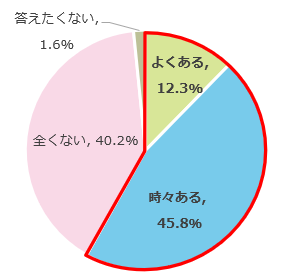 子どもがスマホを所有していると回答した430名を対象に、スマホが原因で子どもとトラブルになった経験があるか聞いたところ、「よくある(12.3%)」、「時々ある(45.8%)」と合わせて58.1%の保護者がトラブルになったことが分かりました。