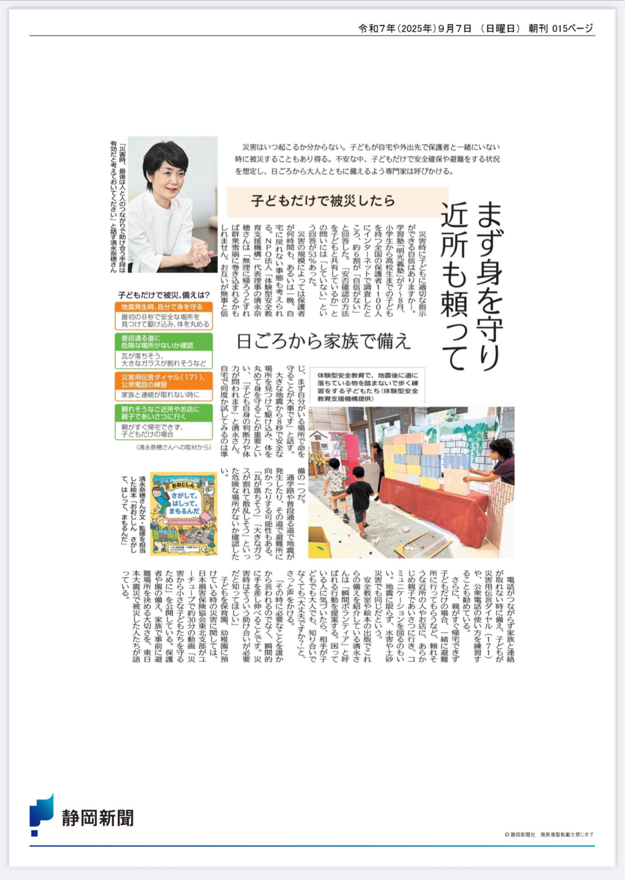 静岡新聞9月7日(共同通信配信)にて当社の調査リリース 明光義塾調べ 「子どもがいる家庭の防災に関する実態調査」 (2025年8月8日)についてお取りあげいただきました。