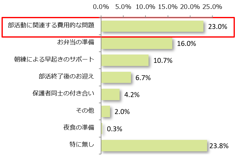 - 子どもの部活動、保護者が一番大変なのは?「部活動に関連する費用的な問題(23.0%)」