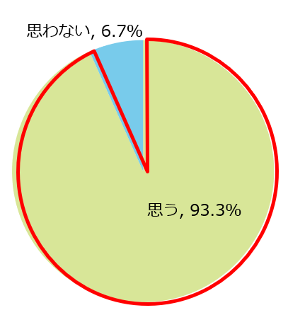 子どもに現在所属している部活を引退まで続けて欲しいかと聞いたところ、「思う(93.3%)」、「思わない(6.7%)」と9割以上の保護者が最後まで部活動をやり遂げて欲しいと希望していることが分かりました。