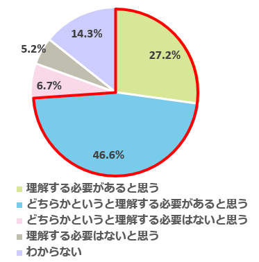 「教育改革」の内容を理解していないと回答した保護者519名を対象に、内容を理解する必要があると思うか聞いたところ、「理解する必要があると思う(27.2%)」、「どちらかというと理解する必要があると思う(46.6%)」と合わせると、7割以上の保護者が理解する必要があると感じていることが分かりました。