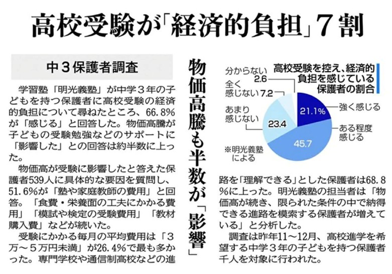 当社が12月に実施した「受験生を支える保護者のサポート実態調査」について1月28日付の中国新聞SELECTの3ページに掲載されました。 受験生をかかえる保護者1,000名の高校受験の経済負担実情を明らかにした調査として注目されました。 2026年1月28日掲載 中国新聞(広島・島根・鳥取・山口・岡山)