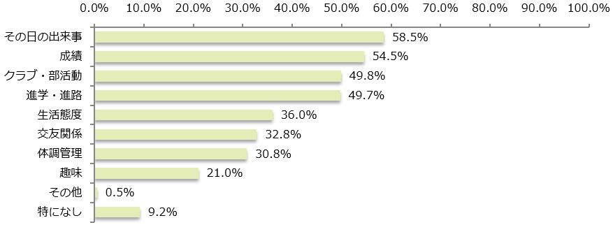 パートナーとの会話で子どもの話題として多いのは「その日の出来事」「成績」「クラブ・部活動」