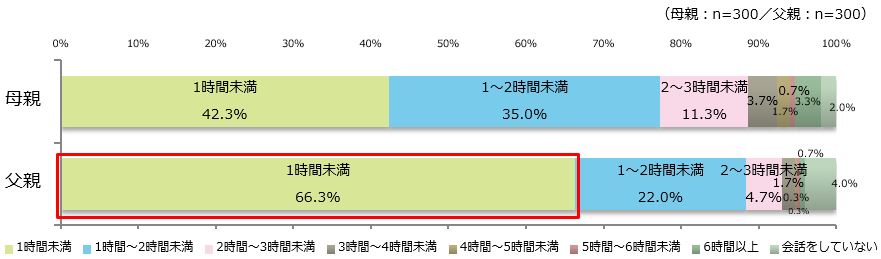 母親・父親別では父親「1時間未満」66.3%と顕著な傾向