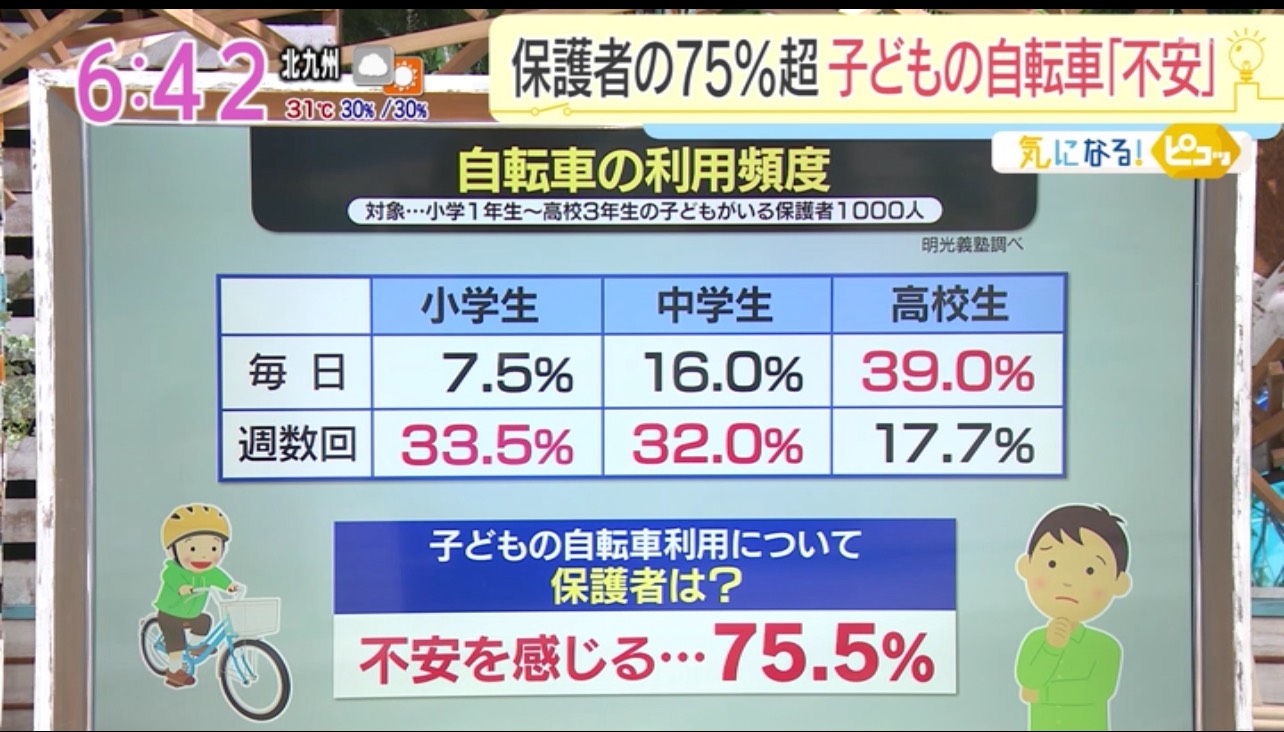 このたび福岡県で展開されている「秋の交通安全運動」を取りあげたテレビ番組において、当社が行った調査結果が紹介されました。テーマは「自転車利用時のヘルメット着用」。日が短くなる秋は事故が増える時期であり、改めて子どもたちの安全を考える大切な機会となりました。