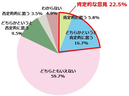 また、知っていると回答した方を対象にセンター試験の廃止および「大学入学共通テスト」をどう思うかと聞いたところ「肯定的に思う」、「どちらかというと肯定的に思う」と回答した保護者は22.5%にとどまる結果となりました。これらの結果より、多くの保護者の方が「2020年教育改革」についてまだまだ不明点が多いということがわかりました。
