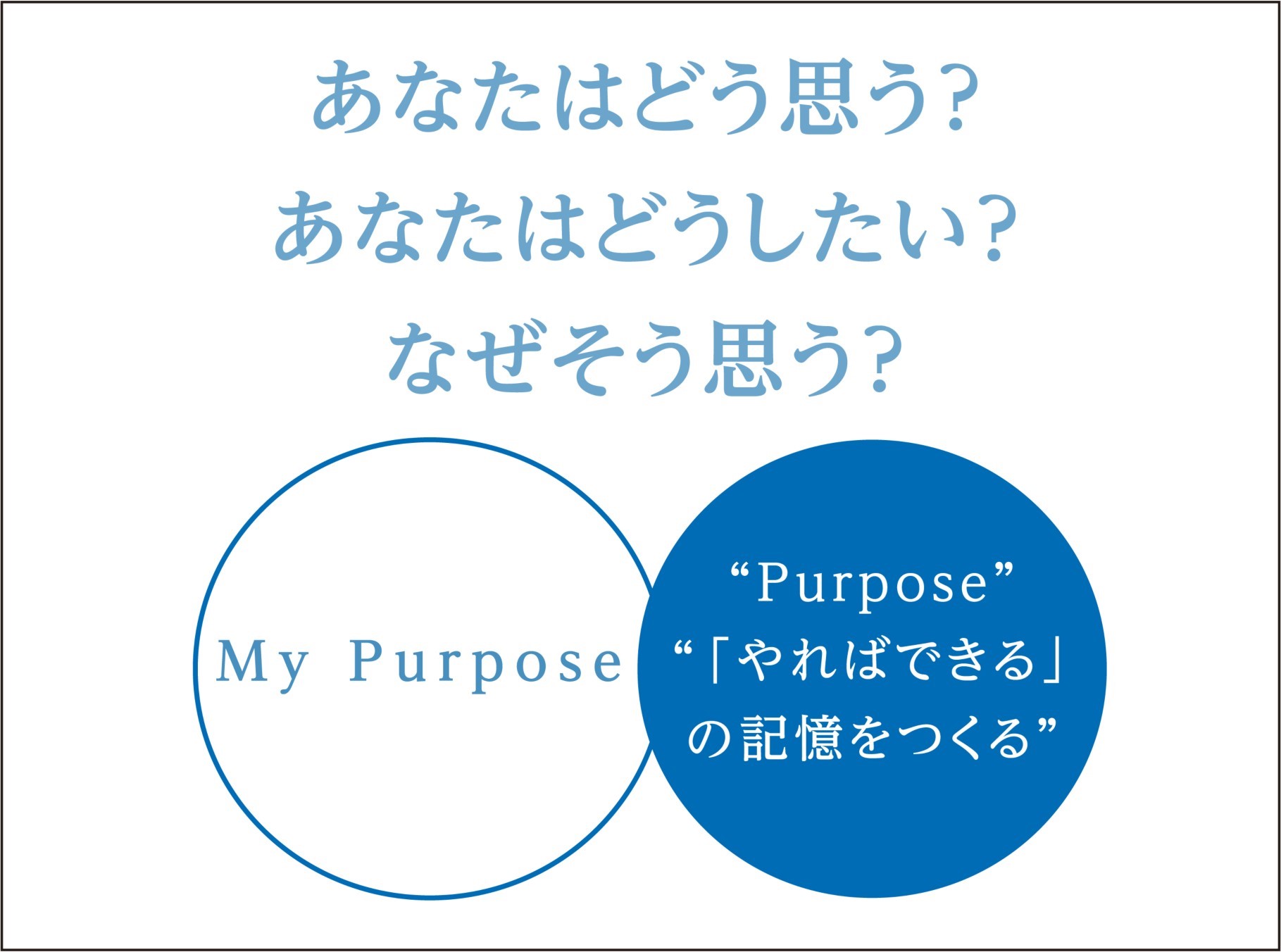 そのために“Purpose”、“Vision”、“Values”に関する集合型ミーティング、ワークショップを定期的に実施し、「創業の精神」や当社の“Purpose”がなぜ「『やればできる』の記憶をつくる」なのかを学んでおります。従業員一人ひとりに働く意義を問いかけ、当社の“Purpose”と従業員一人ひとりのMy Purposeとの共通点を深掘りしております。