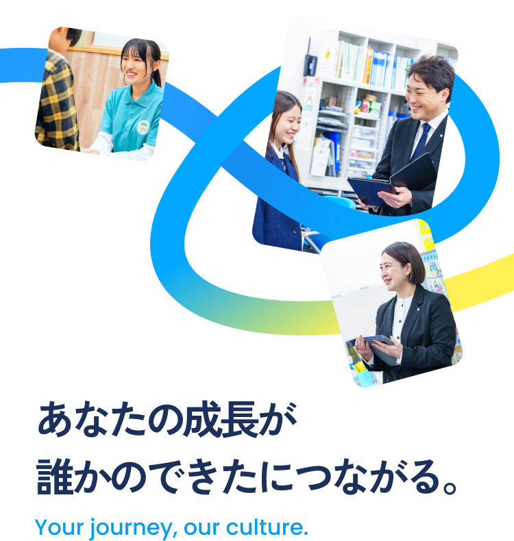 当社が目指すのは、「人の可能性をひらく企業グループ」になること。「やればできる」という記憶は、その瞬間だけでなく、数年後、もしかしたら数十年後にも、 一歩を踏み出す勇気をくれるはずだから。「全ての人の、可能性をひらく」それが私たちの仕事です。