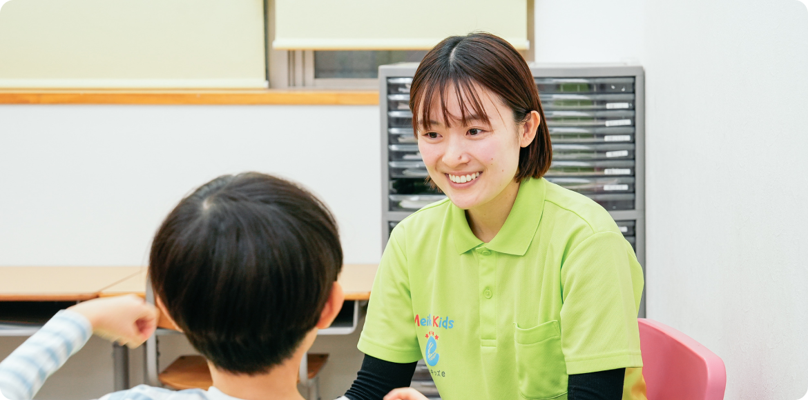 「子どもと関わる仕事」「英語を教えられる仕事」に絞って就職活動をしていた中で、当社のインターンシップに参加したことが最初のきっかけでした。