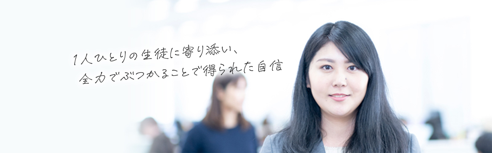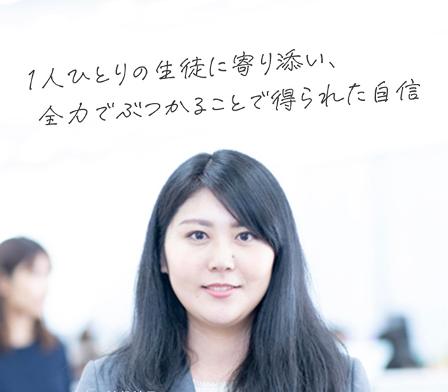 「勉強を教えるのは私には難しいかな…」。就活を始めた当初はそう考えていて、教育業界にはあまり興味を持てませんでした。そんな中、他業種で1社、内定を頂くことができたのですが、ふと「本当にこれでいいのか」と立ち止まってみたんです。その時に偶然見た明光義塾のウェブサイトで「勉強を教えるだけでなく、教育を通して人を育てていく」という方針を目にして、元々「人の人生に関わる仕事をしたい」と考えていたので、「面白そう」と思い、受けてみました。そして、気がつくと最終面接までスムーズに辿り着き、「これはご縁かな」と感じて、明光に決めました。入社後は教室長として5年で4教室を任され、苦労もありましたが、生徒へのカウンセリング体制は「人間力を育てる」という理念通りだと実感することができました。