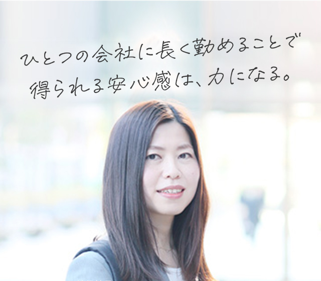 「なんで、そんなに会社辞めないの?」。ときどき、そんなふうに友達に聞かれることがあります。30代の女性なら、転職のひとつやふたつ、経験している人が多いからでしょう。私は、新卒で入社して、勤続15︎年目。同じことをやり続けるのが好きな性格というのもありますが、働く仲間や、会社に支えてもらったことが、これまで続けてこられた大きな理由だと思います。長く勤めてきたメリットというのもあります。徐々に関わる人が増えてきて、ゆっくり築いた縁のおかげで、仕事がやりやすくなってきました。私は今年、産休を経て仕事復帰したばかりですが、希望の部署で働かせてもらっています。女性の意見も大切にしてくれる環境で、安心感を感じながら働けるのはうれしいことです。