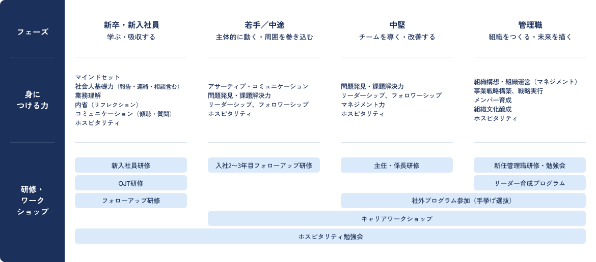 新⼊社員のフォローアップから管理職のビジネススキルアップまで、