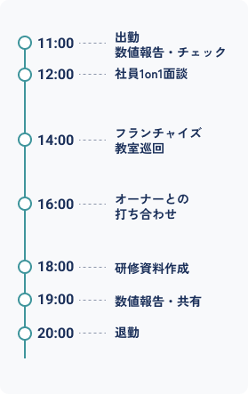 担当エリアの複数スクールを統括し、戦略策定・人材育成・数値管理などを行うポジションです。教育事業の"経営"に携わりながら、地域全体の可能性を広げていきます。現場経験を活かして、より大きな視点で"教育を変える"リーダーに。