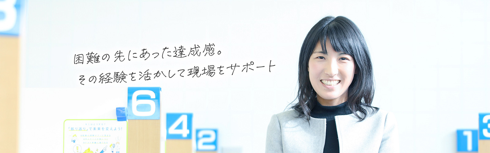 教室長を約4年、その後1年半の育児休暇を経て、今は多摩エリア配属で復職。各教室で数ヶ月ずつ、サポートという立場で11時~17時の短時間勤務をしています。寂しいのは生徒と関わる時間が少なくなったこと。けれどその分、自分が教室長だったときは余裕がなくて、こうしておけばもっと良かったな、と後悔していたことを積極的に行っています。例えば、訴求率の高いチラシの作成、効果が生まれやすい時期にDMを出すなど。塾は学力向上はもちろん、まず生徒を集めることが大事。当時は新規生徒の獲得にあまり気が回らなかった。教室長の大変さは身にしみているので、客観的な立場で何がその教室で大切なのか、足りないのかを見極めてサポートしていくことに、今は達成感を感じています。