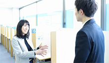 教室長と簡単な打ち合わせ。その日のスケジュール、報告事項などをお互いに確認。どんな些細な情報でもきちんと共有することで、スムーズな流れで業務が進行できる。 |